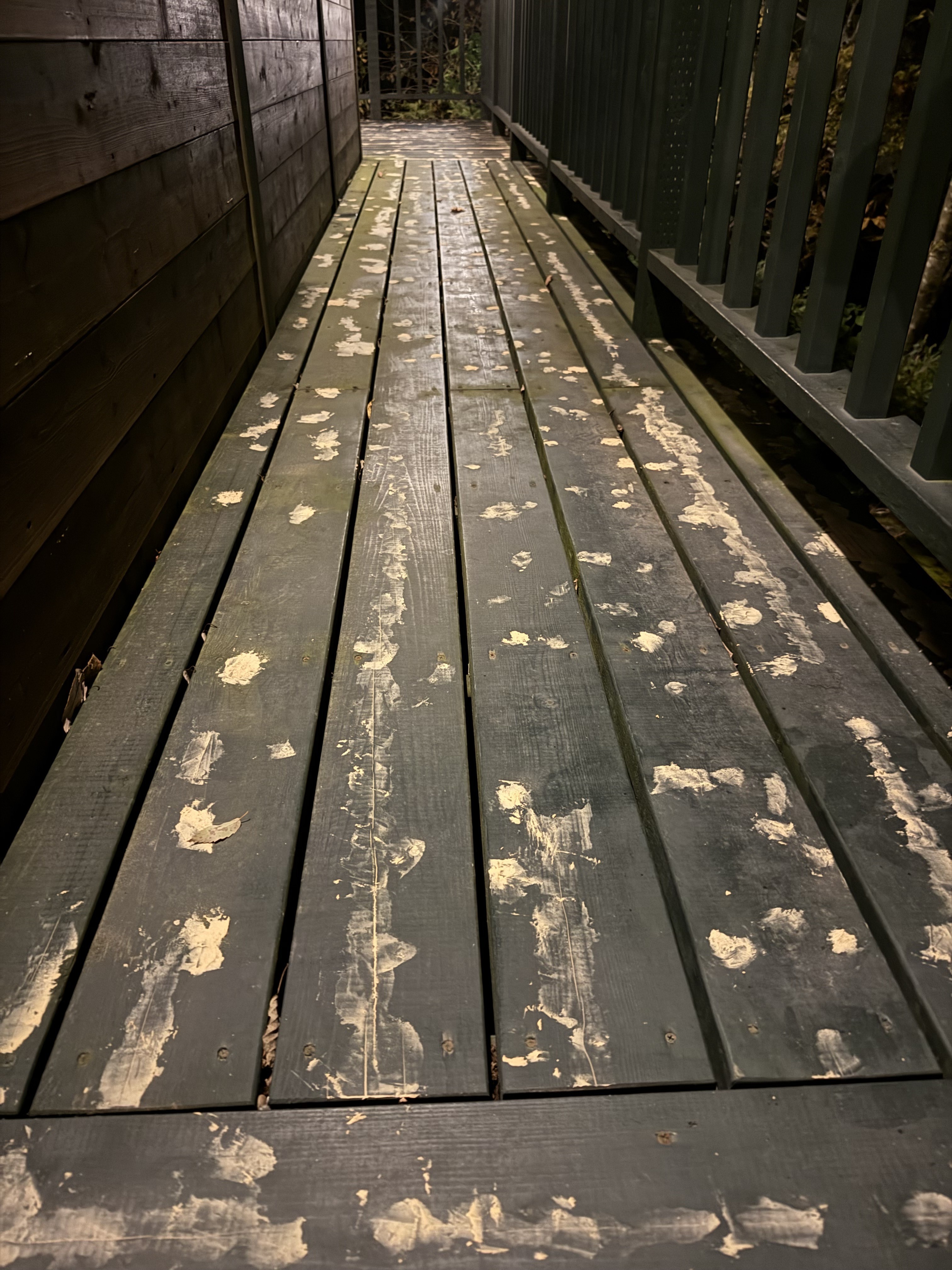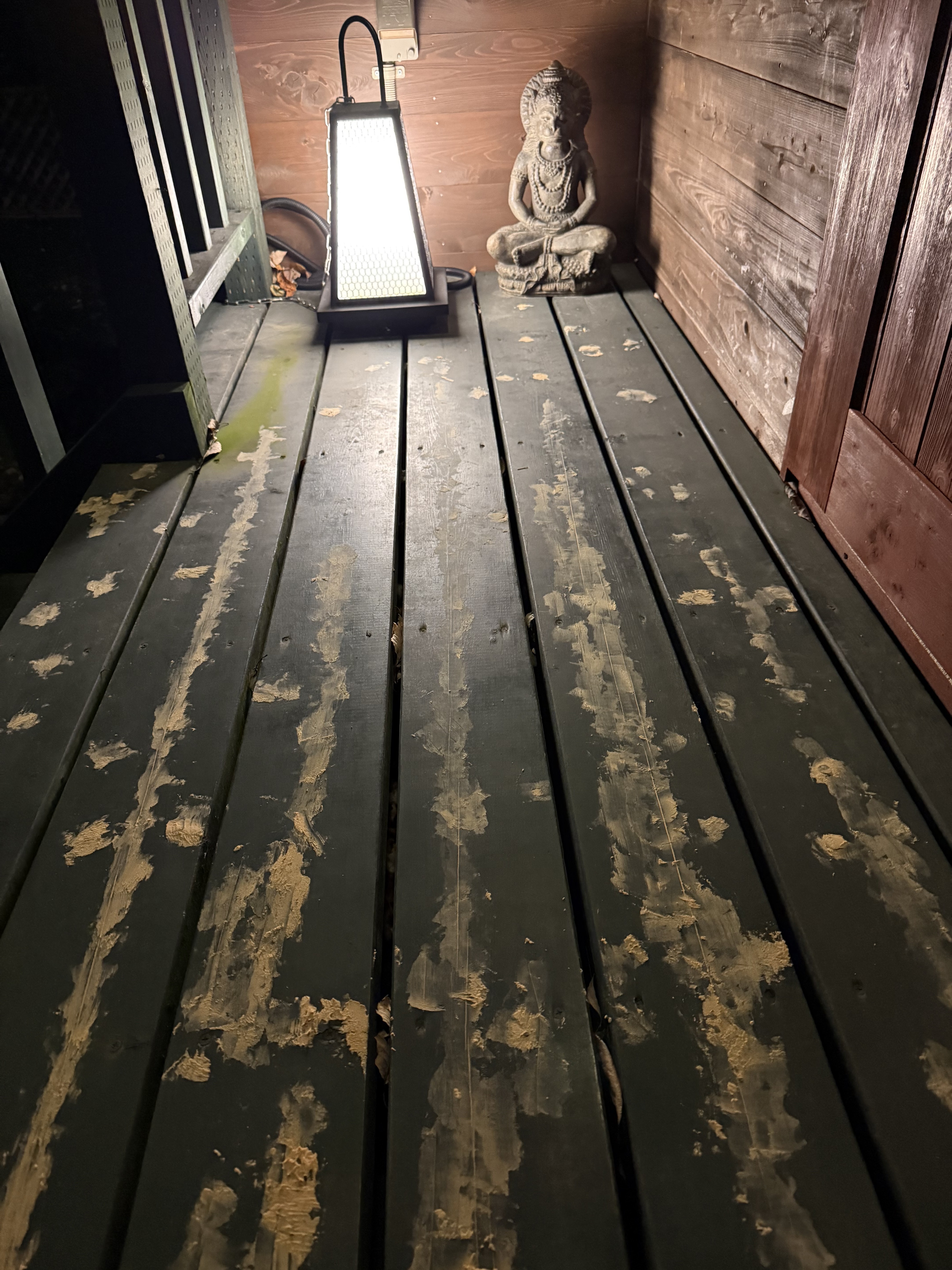 なので割れ目ができたらパテで埋めて、サンダーをかけて平らにして、キシラデコールで着色をするという地道な保守が効果的なんではないかなということで、資産保全のため頑張ってます。